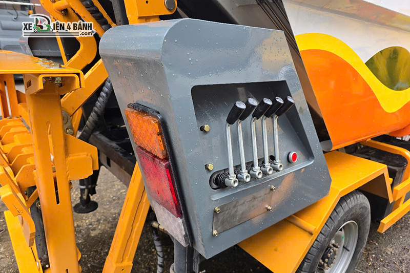 Xe kẹp gầu, lật đổ thùng chứa rác , các thao tác thực hiện dễ dàng bằng núm điều khiển trực tiếp trên xe hoặc điều khiển từ xa