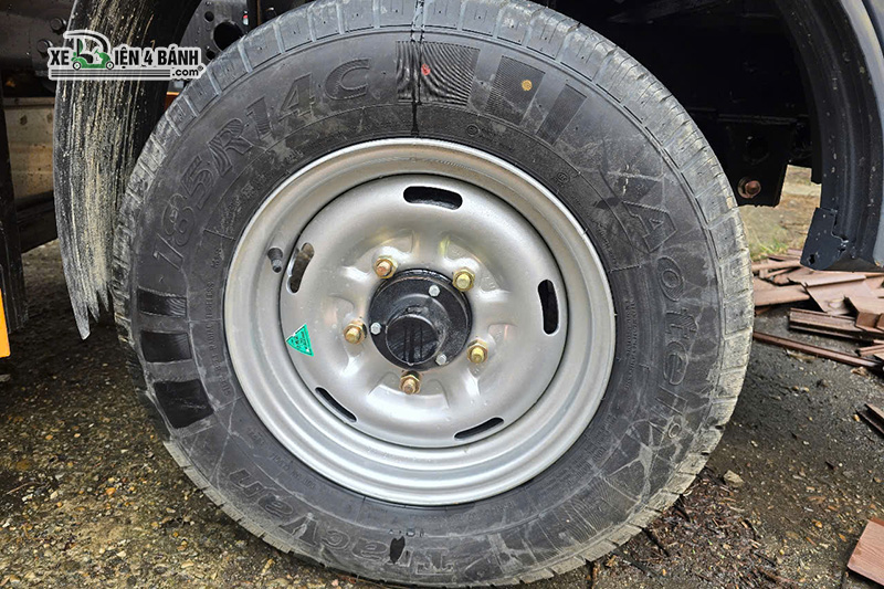 Xe được trang bị lốp chân không chịu lực 185/R14 LT của thương hiệu nổi tiếng, tải trọng một lốp là 940KG, khả năng chịu tải lớn, chống mài mòn, không dễ rò rỉ khí và tuổi thọ cao |